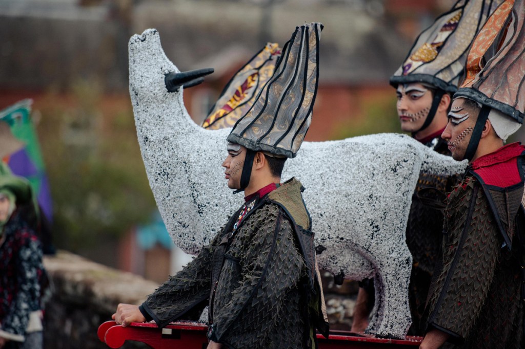 Even with the benefit of hindsight over the 13 years of questions and theories about the meaning and significance of the Salty Coo within Nithraid, she remains obstinately bovine and resistant to explanation. She is without question the focal point of the ritual element of the celebration centred around the race. Every year she is salted anew, carried through the town at shoulder height and despite being eyeless, she watches the celebration of the river from an elevated place and is finally herself committed to the receding tide.